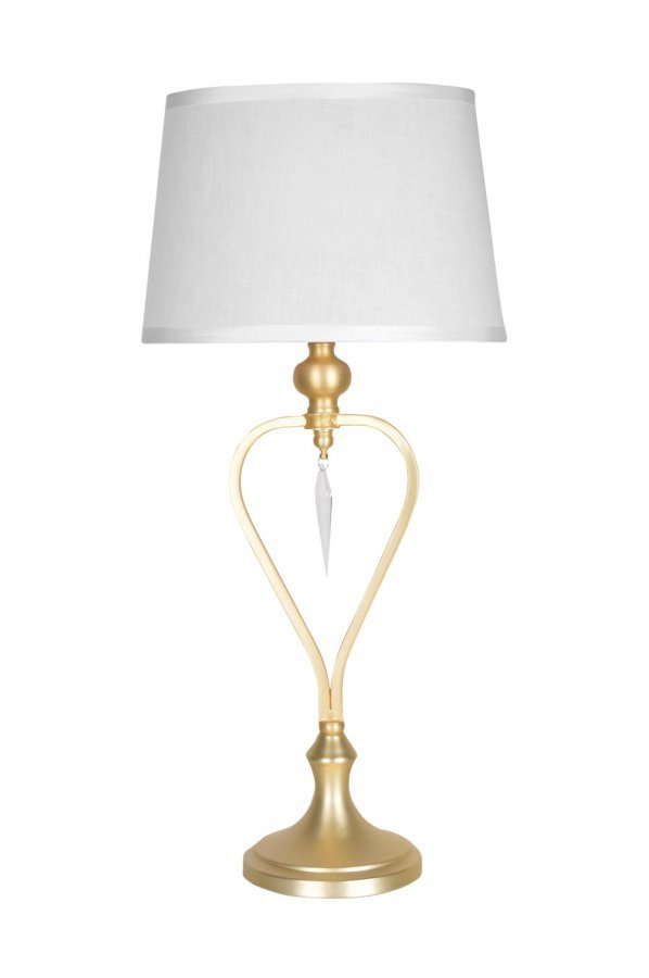 Pöytävalaisin, jonka jalassa harjatusta metallista muotoiltu sydän ja riippuva kristalliprisma. Varjostin puuvillaa. Korkeus 65 cm, leveys 30 cm, syvyys 20 cm. Lampunkanta E27. Enintään 60 W. 2 metrin läpikuultava johto, jossa virtakytkin.