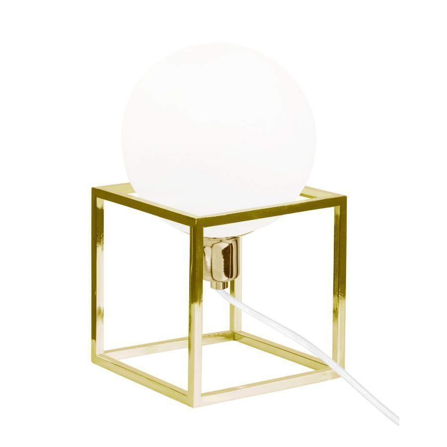Moderni ja trendikäs messinkinen pöytävalaisin Globen Lightingilta. Tyylikäs kulmikkaan ja pyöreän muodon yhdistelmä ja valaisin joka sopii moniin tyyleihin ja tiloihin. Suunnittelija: Patrik Hall. Tukeva runko neliöputkesta ja kupu mattalasia. Valkoinen tekstiilijohto valkoisella katkaisijalla sisältyy. Johdon pituus 2 metriä. Kanta E14. Max 40 W. Saatavissa ainoastaan verkkokaupastamme.