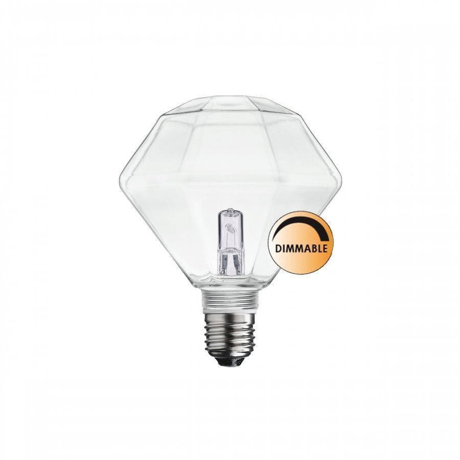 Koristeellinen timantin muotoinen lamppu kirkkaalla lasilla. Kun lamppu lopettaa toimintansa voidaan timantin muotoinen lasikupu irroittaa ja polttimo vaihtaa. (Art nr 174426 ja 174427). Himmennettävissä. Kanta E27 ja G9. Halogeenilamppu 18 W 204 lm (Vastaa valoteholtaan noin 25 W:n perinteistä hehkulamppua.) Käyttöikä 2000 tuntia. Saatavissa ainoastaan verkkokaupastamme.