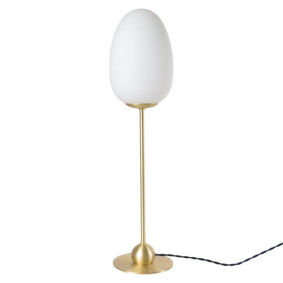 Divine pöytävalaisin on klassinen moderni valaisin valkoisesta lasista ja jalalla harjatusta messingistä. Valaisimessa on musta kierretty tekstiilijohto.