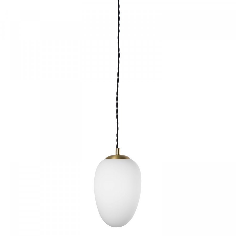 Divine riippuvalaisin on klassinen moderni valaisin valkoisesta lasista ja yksityiskohdilla harjatusta messingistä. Valaisimessa on musta tekstiilijohto.