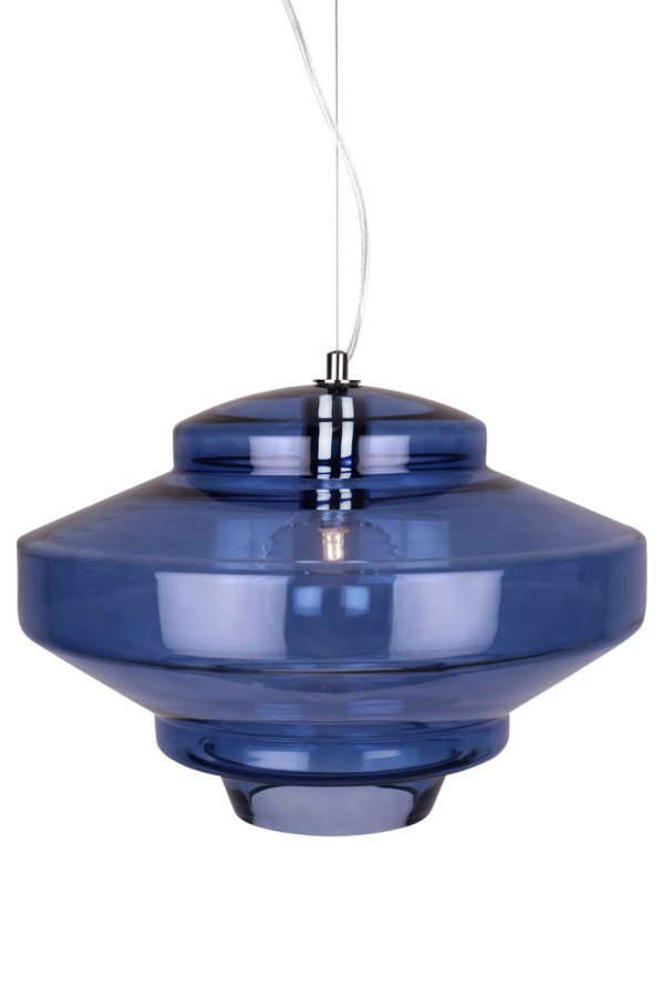 Duomo-kattovalaisin suupuhallettua lasia. Päällä ja sisällä olevat detaljit kromia tai messinkiä. Ripustusvaijeri ja läpikuultava johto. Korkeus 30 cm. Halkaisija 38 cm. Lampunpidike E27. Enintään 60 W. Lamppu ei mukana.