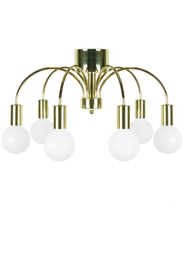Krominvärinen 6-haarainen plafondi. Helppo ripustaa koukun avulla. Halkaisija ilman valonlähdettä 56 cm Korkeus ilman valonlähdettä 26 cm. Lampunpidike 6xE27. Enintään 60 W. Suunnittelija: Tess Palm. Valonlähteet eivät mukana. Kuvan valkoiset lasikuulat ovat opaalilamppuja, jotka tulee ostaa erikseen.