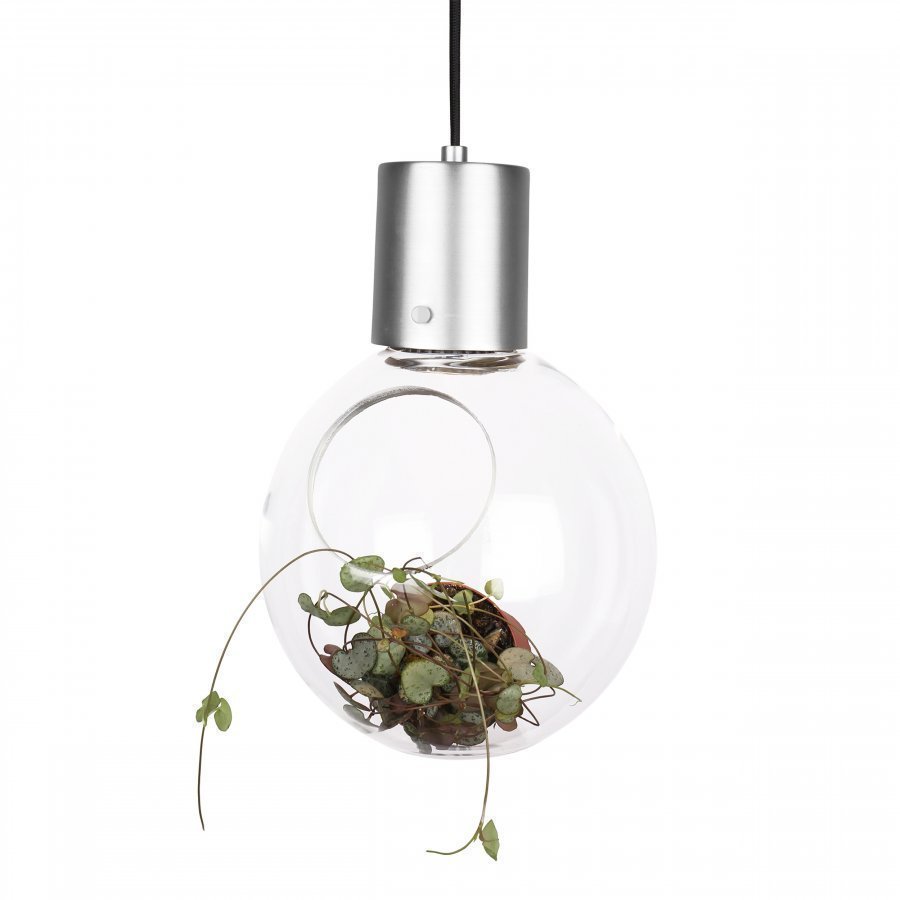 Riippuvalaisin/pöytävalaisin Globen Lighting -tuotemerkiltä. Kirkas lasipallo, jossa on alaosassa reikä. Tasainen pohja mahdollistaa valaisimen käytön myös pöydällä. Päätä itse mitä haluat valaista pallon sisällä. Ykstityiskohdat harjattua metallia ja 3,5 m pitkä musta kangasjohto, jossa on katkaisija, sekä seinäpistoke. Lampunkanta E14. Max 25 W.
