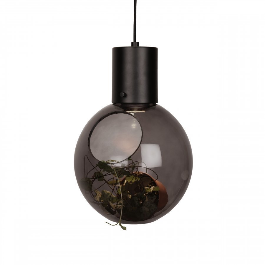 Riippuvalaisin/pöytävalaisin Globen Lighting -tuotemerkiltä. Savun värinen lasipallo, jossa on alaosassa reikä. Tasainen pohja mahdollistaa valaisimen käytön myös pöydällä. Päätä itse mitä haluat valaista pallon sisällä. Ykstityiskohdat harjattua metallia ja 3,5 m pitkä musta kangasjohto, jossa on katkaisija, sekä seinäpistoke. Kanta E14. Max 25 W.