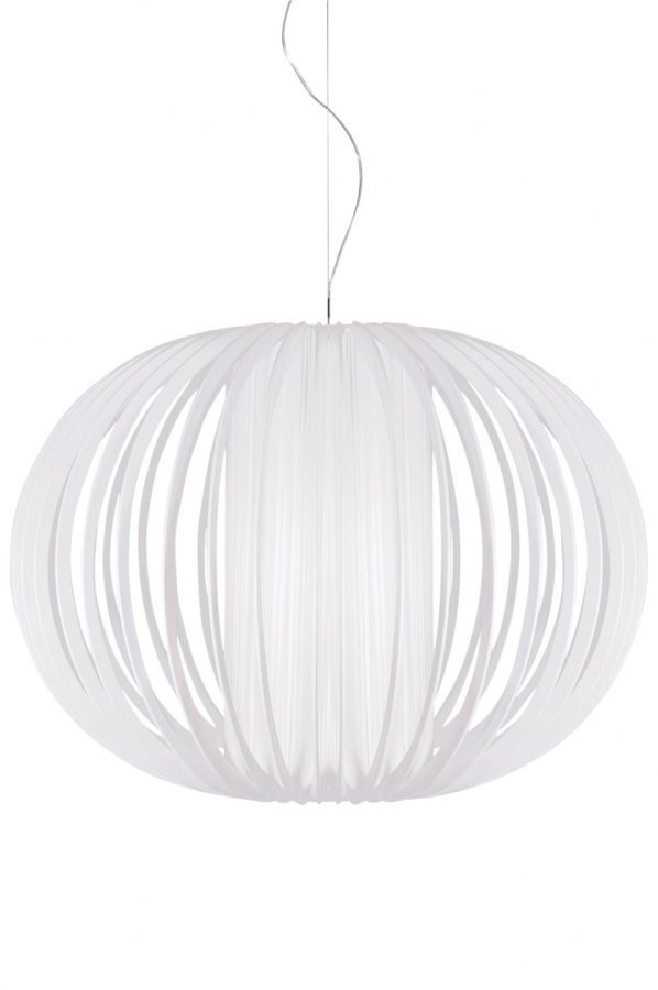 Kattovalaisimessa valkoista muovinauhaa kierrettynä metallirungon ympäri. Halkaisija 65 cm. Korkeus 48 cm. Johdon ja vaijerin pituus 3 metriä. Lampunpidike E27. Enintään 60 W.