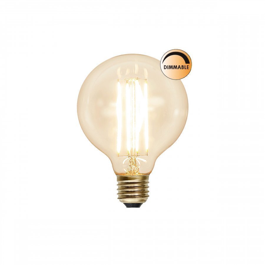 Koristeellinen pallon muotoinen LED-lamppu rusehtavaa lasia. Antaa lämpimänvalkoisen valon, joka muistuttaa perinteisen hehkulampun valoa. Himmennettävissä. Kanta E27. 3,6 W 320 lm (vastaa valoteholtaan 30 W:n hehkulamppua). Käyttöikä 25000 tuntia. Saatavissa ainoastaan verkkokaupastamme.