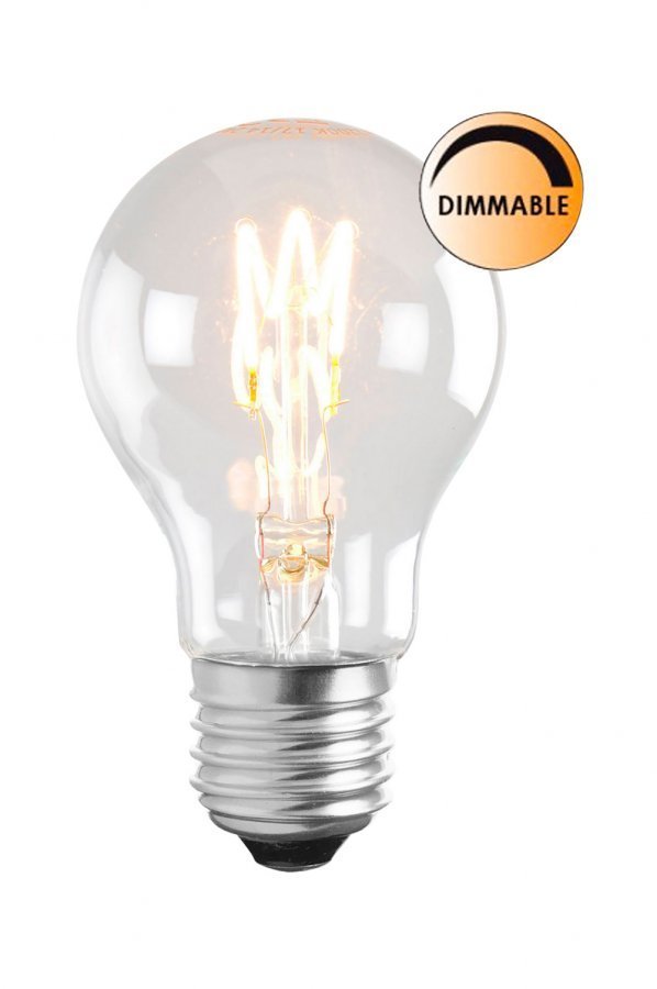 Kirkas Normal Soft LED Filament -lamppu. Lämpimän valkoinen. Himmennettävä. E27 3 W (=25 W) (2200 K, 150 lm) Korkeus 10 cm, leveys 6 cm