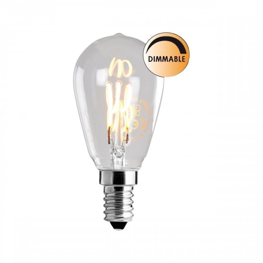 Kirkas LED-lamppu lämpimänvalkoisella valolla, himmennettävä. E14 3W (=25W) (2200K, 150lm). Korkeus: 8,5 cm, leveys: 3,8 cm.