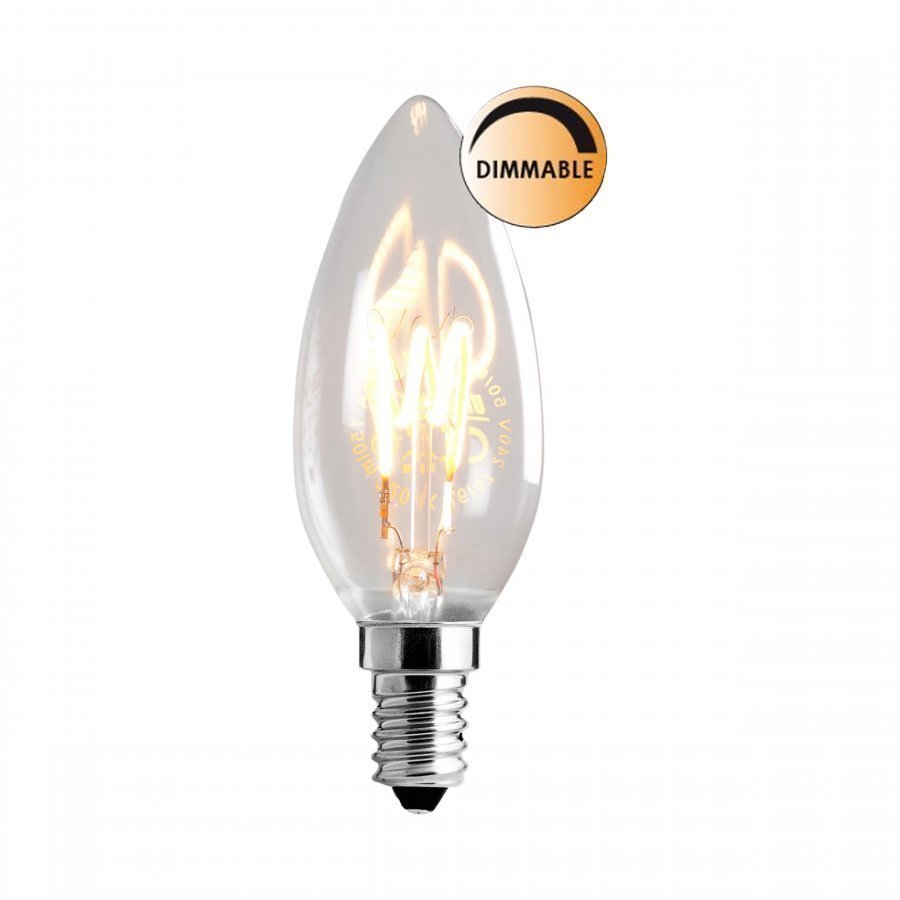 Kirkas LED-lamppu lämpimänvalkoisella valolla, himmennettävä. E14 3W (=25W) (2200K, 150lm). Korkeus: 10 cm, leveys: 3,5 cm.