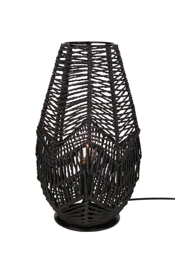 Missy-pöytävalaisin, jossa kaunis marokkolaishenkinen kuvio. Kierrettyä rottinkia. Kangaspäällysteinen johto, jossa katkaisin. Korkeus 30 cm. Halkaisija 18 cm. Lampunkanta E14. Enintään 40 W. Design: Anna Andersson.