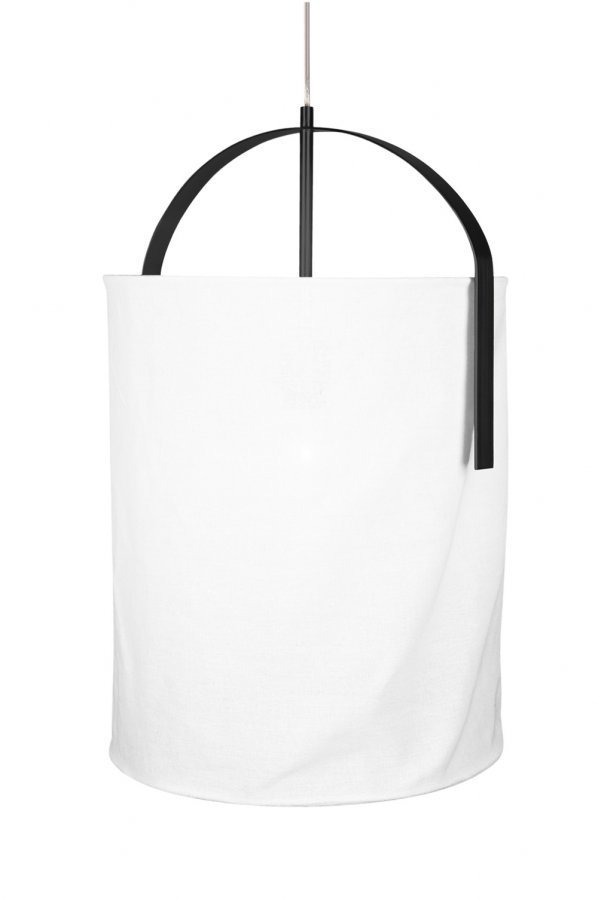 Nest-kattovalaisin valkoista läpikuultavaa pellavaa. Koristekaari metallia. Läpikuultava johto. Korkeus 60 cm. Halkaisija 35 cm. Lampunkanta E27. Enintään 60 W. Design: Patrick Hall.