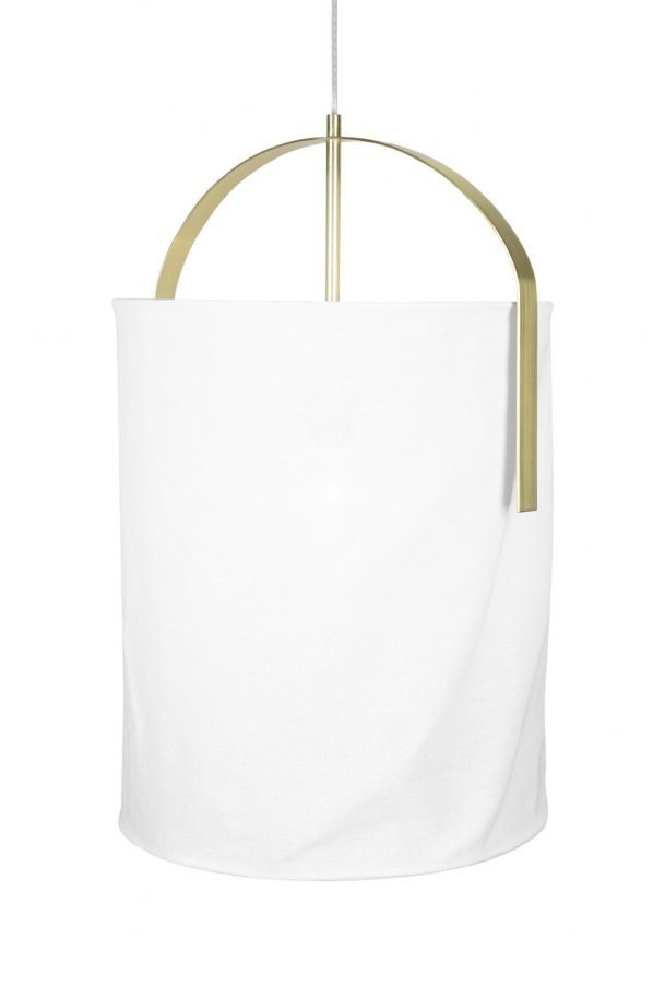 Nest-kattovalaisin valkoista läpikuultavaa pellavaa. Koristekaari metallia. Läpikuultava johto. Korkeus 60 cm. Halkaisija 35 cm. Lampunkanta E27. Enintään 60 W. Design: Patrick Hall.