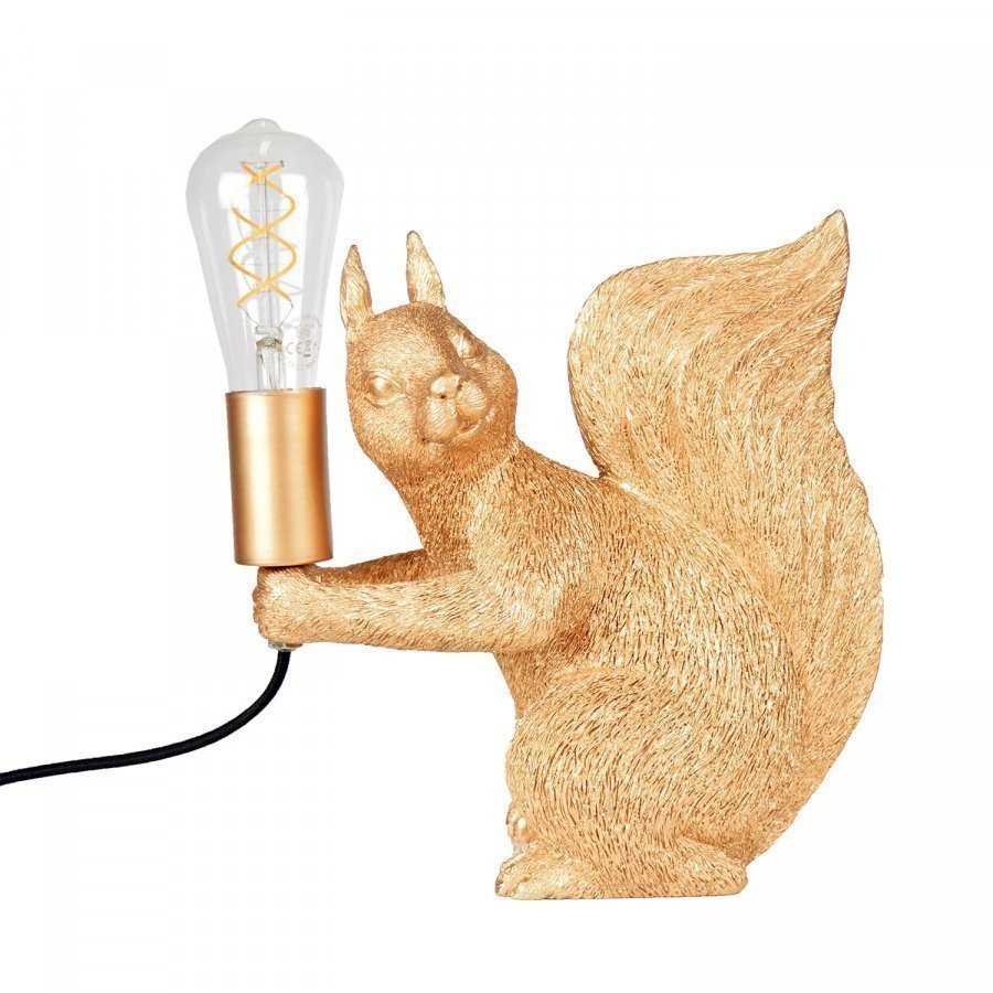 Piff on leikkisä pöytävalaisin oravan muodossa. Valmistettu hienoilla yksityiskohdilla messinginvärisestä polyseriinistä. Valaisimessa on musta tekstiilijohto.