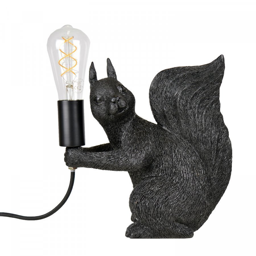 Piff on leikkisä pöytävalaisin oravan muodossa. Valmistettu hienoilla yksityiskohdilla mustasta polyseriinistä. Valaisimessa on musta tekstiilijohto.