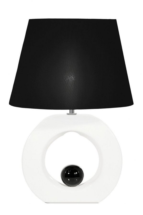 Pöytävalaisin keramiikkaa. Koristekuula keramiikkaa. Varjostin puuvillaa. Läpikuultava johto, jossa katkaisin. Korkeus 48 cm. Varjostin 34 x 22 cm. Lampunpidike E27. Enintään 60 W.