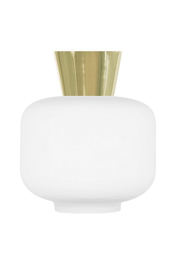 Ritz-plafondi, jonka kupu valkoista opaalilasia. Ripustusosio metallia. Koukkuripustus. Korkeus 26 cm. Halkaisija 25 cm. Lampunkanta E27. Enintään 60 W. Design: Tess Palm.