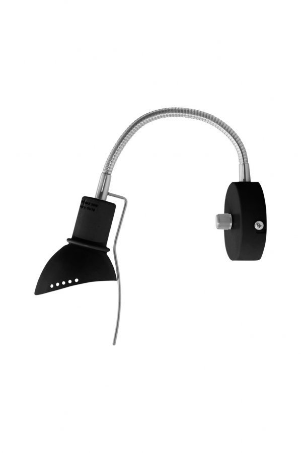 Ingo-seinävalaisin metallia. Kuvussa reikäkuvio. Krominväriset detaljit ja joustava varsi. Läpikuultava johto, himmennin seinälevyssä. Korkeus 14 cm. Etäisyys seinästä 8 cm 17 cm. Lampunkanta GU10. Enintään 35 W (halogeenilamppu ei sisälly toimitukseen). Design: Ingvar Bengtsson.