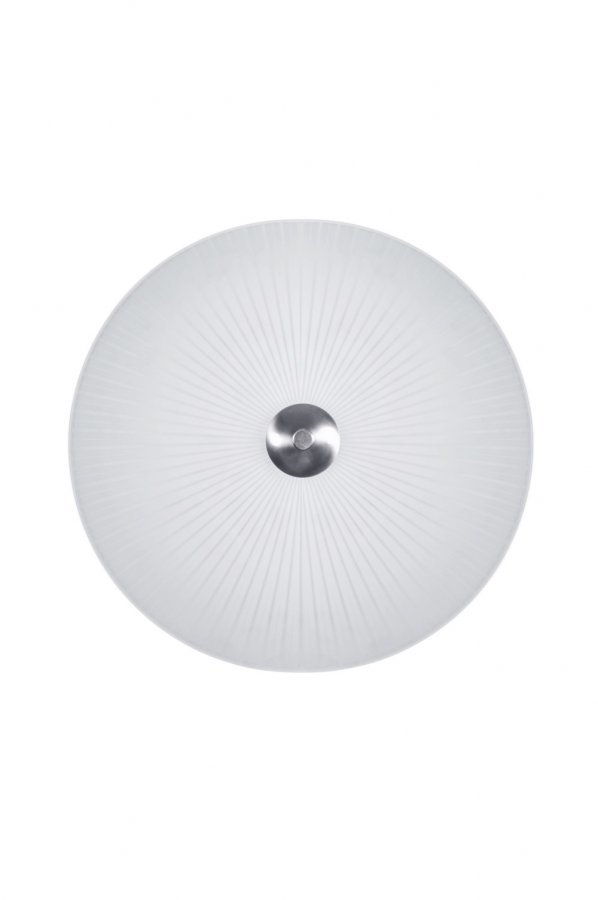 Lasisessa plafondissa säteilevä kuvio! Kauniisti hiotut osat. Mukana ripustuskoukku valkoista metallia. Halkaisija 40 cm, korkeus 17 cm. Lampunpidike: E14, enintään 3 x 40 W.