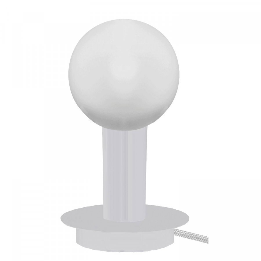 Torch pöytävalaisin, Globen Lighting. Yksinkertainen ja koristeellinen pöytävalaisin joka sopii hyvin ikkunalle, yöpöydälle tai olohuoneen sivupöydälle. Lampunjalka on valmistettu valkolakatusta metallista mukana tekstiilijohto katkaisijalla. Erityisen hieno valaisimesta tulee kun siinä käytetään isoa hehkulamppua. Torch valaisin antaa miellyttävän valaistuksen toimien kauniina sisustusyksityiskohtana kodissa. Valonlähde ei kuulu hintaan.