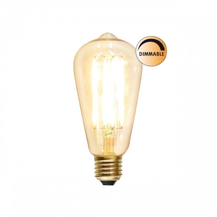 Koristeellinen pitkulainen LED-lamppu rusehtavaa lasia. Antaa lämpimänvalkoisen valon, joka muistuttaa perinteisen hehkulampun valoa. Himmennettävissä. Kanta E27. 3,6 W 320 lm (vastaa valoteholtaan 30 W:n hehkulamppua). Käyttöikä 25000 tuntia. Saatavissa ainoastaan verkkokaupastamme.