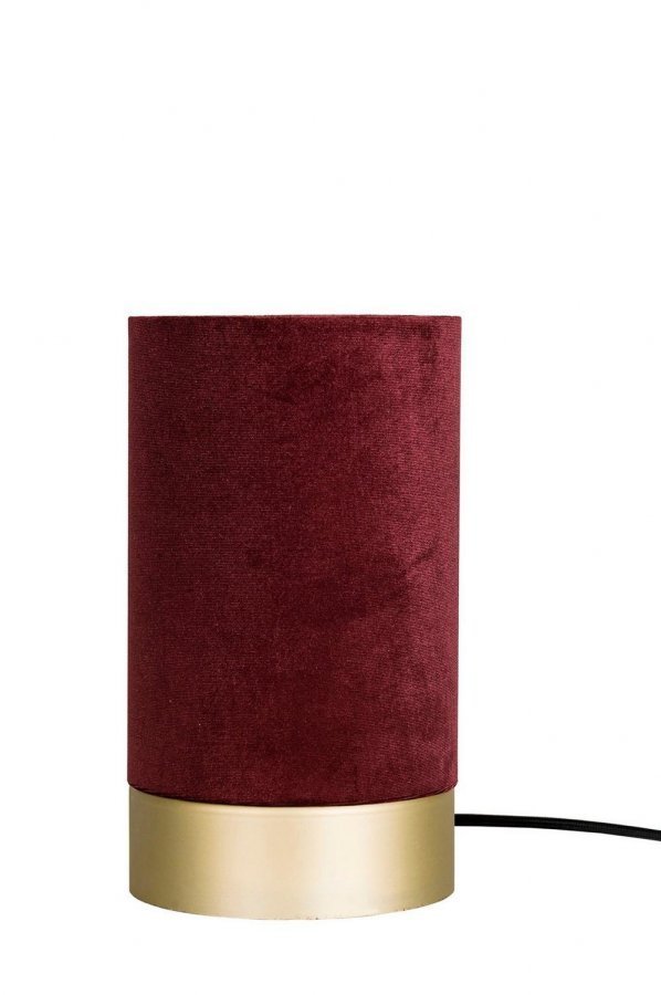 Pöytävalaisin trendikästä samettia, lampunjalka harjattua messinkiä. Korkeus 26 cm, Ø 15 cm. Lampunkanta E14. Enintään 40 W. 2 metrin kangasjohto, jossa virtakytkin.