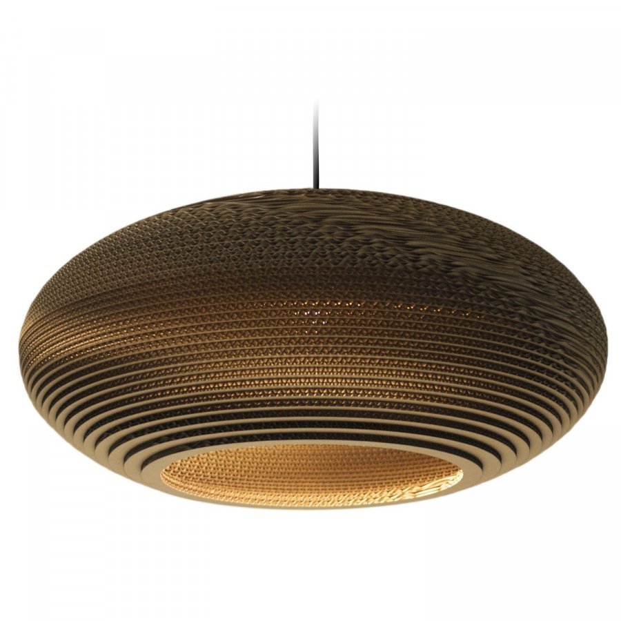 Disc kattovalaisin, Graypants. Kaunis, uusiokäytetystä pahvista valmistettu valaisin joka on käsitelty myrkyttömällä paloturvallisuusaineella. Jokainen osa on laserleikattu ja käsinkiinnitetty, jonka ansiosta jokainen valaisin on ainutlaatuinen, ja saattavat erota toisistaan. Tämä valaisin säteilee harmoonista sekä miellyttävää tunnelmaa, ja on todella kaunis ruokapöydän ylle ripustettuna. Valaisimen tekstiilijohto on 2 metriä pitkä, ja sen mukana tulee musta jauhelakattu, teräksinen kattokupu. Valaisin on tarkoitettu ainoastaan kuivaan ympäristöön.