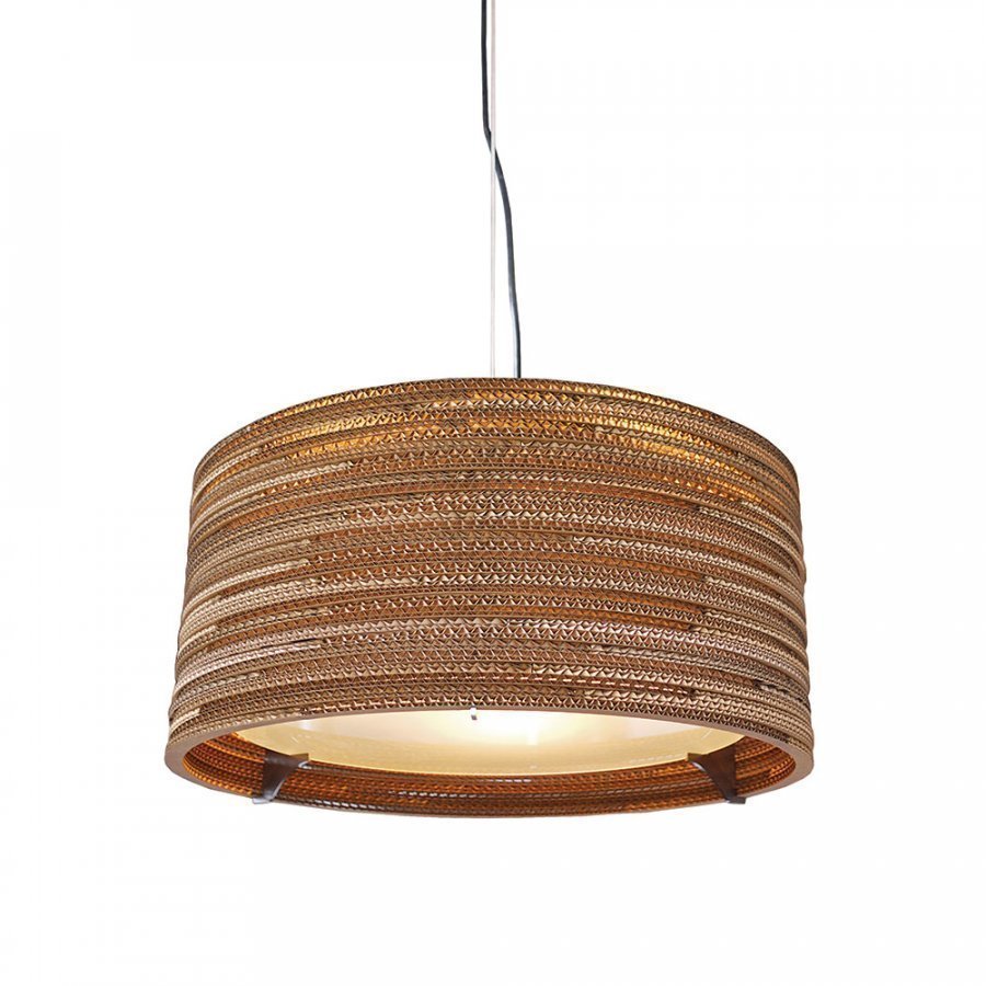 Scraplights sarjan valaisimet ovat leikattu laserilla ja ja koottu käsin. Pienet värivaihtelut ja aaltopahvin leikkaaminen käsin tekevät valaisimista todella uniikkeja. Scraplight sarjasta huokuu harmooninen ja miellyttävä tunnelma. Ympäristöystävällisesti kierrätyspahvista käsintehdyt valaisimet luovat ympärilleen tunnelmallista valoa. Käsityöstä johtuen varjostimen muoto ja koko saattavat hieman vaihdella. Mustan kangaspäällysteisen johdon pituus on 2 metriä. Musta pulverimaalattu kattokuppi. Valaisin on käsitelty myrkyttömällä palonsuoja-aineella. Käytä valaisinta ainoastaan kuivassa tilassa. Puhdistus: Paineilmapuhallus.