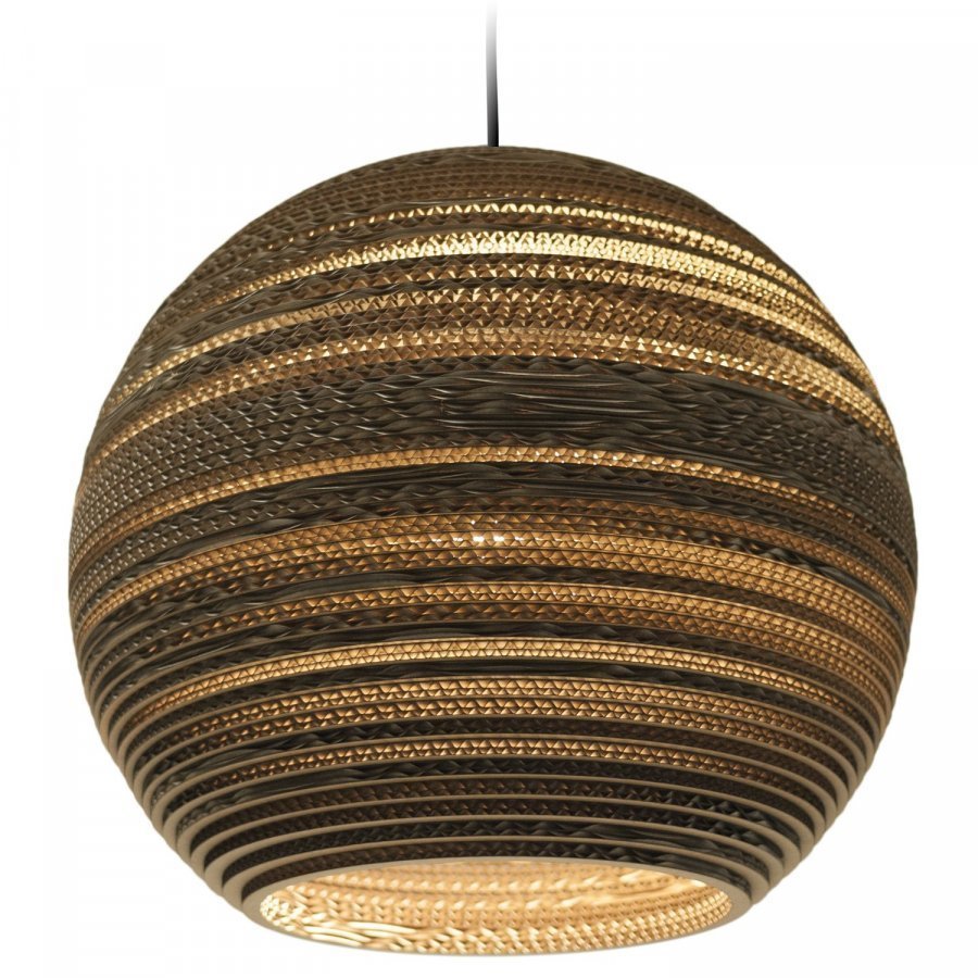 Moon kattovalaisin, Graypants. Kaunis, uusiokäytetystä pahvista valmistettu valaisin joka on käsitelty myrkyttömällä paloturvallisuusaineella. Jokainen osa on laserleikattu ja käsinkiinnitetty, jonka ansiosta jokainen valaisin on ainutlaatuinen, ja saattavat erota toisistaan. Tämä valaisin säteilee harmoonista sekä miellyttävää tunnelmaa, ja on todella kaunis ruokapöydän ylle ripustettuna. Valaisimen tekstiilijohto on 2 metriä pitkä, ja sen mukana tulee musta jauhelakattu, teräksinen kattokupu. Valaisin on tarkoitettu ainoastaan kuivaan ympäristöön.