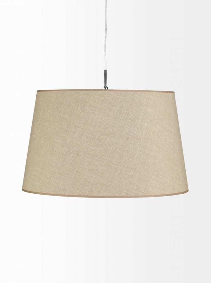 Kattovalaisimen varjostin on tekstiilipintainen ja halkaisijaltaan 60 cm. Korkeus 35 cm. Valonlähde max. 60 W E27. 3 m johtoa, koukkukiinnitys ja valaisinpistotulppa.