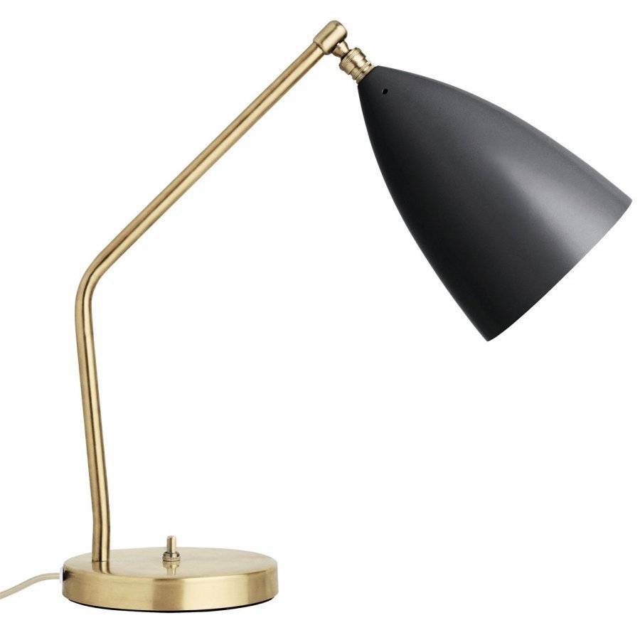 Grasshopper pöytälamppu, Gubi. Muotoilijana Greta M. Grossman. Pöytälamppu antaa miellyttävän valon ja on oiva kirjoituspöytälamppu. Toimii myös kauniina sisustusyksityiskohtana ikkunalaudalla sekä sopii myös makuuhuoneen sivupöytälampuksi. Lampulla on liikutettava messinkirunko jotta saat suunnattua valon tarpeesi mukaan. Tämä ei ole pelkästään käytännöllinen lamppu, vaan myös hyvännäköinen ja tuo ripauksen ylellisyyttä minne sen ikinä asetatkaan.
