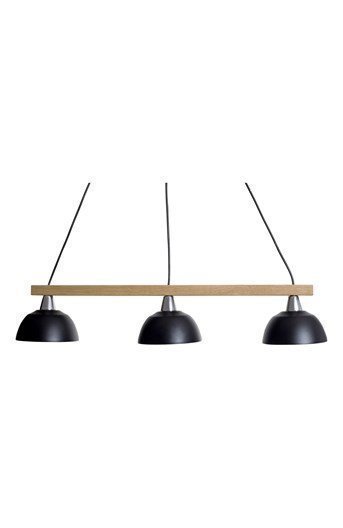 Ruotsalaisvalmisteinen kattovalaisin jossa kolme lakattua peltikupua yhdessä rungossa, runko öljyttyjä tammea. Lampun pituutta… Lue lisää »