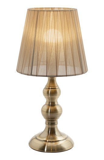 Kaunis pöytävalaisin jossa metallijalka ja varjostin läpikuultavasta organzanauhasta. Tuoteinfoa – Korkeus, maks.: 33… Lue lisää »