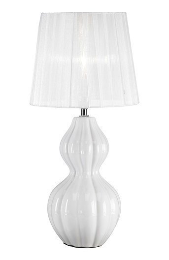 Romanttinen pöytävalaisin, ohuella organzanauhalla kiedottu varjostin. Jalka on tehty keramiikasta ja siinä on… Lue lisää »