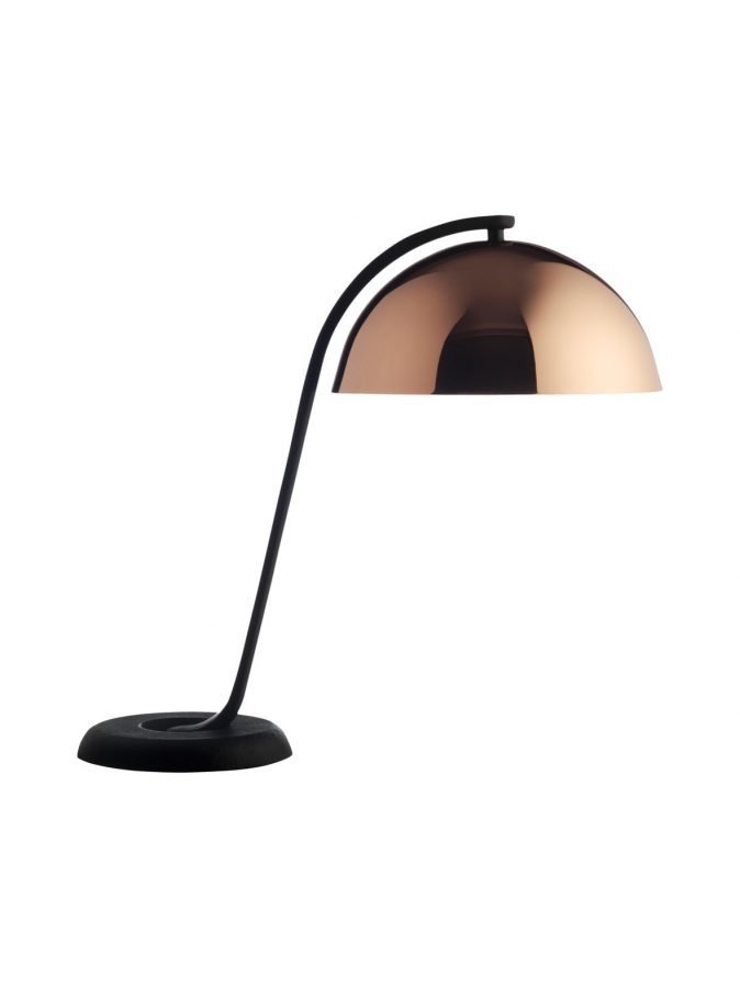 Cloche-pöytälampussa on kauniisti kaartuva jalka, jonka päässä on kiiltävä, puolipallonmuotoinen kupu. Elegantti lamppu sopii hyvin esimerkiksi lukemiseen tai pieneksi tunnelmavaloksi. Valaisimen mukana tulee lamppu.Materiaali on rautaa ja kupu alumiinia.