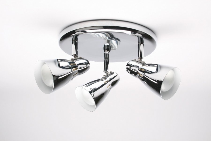 Ajaton 3-osainen kattospotti. Halkaisija 23,5cm. Lamput 3 x E14 R50 max 30W, ei sisälly.