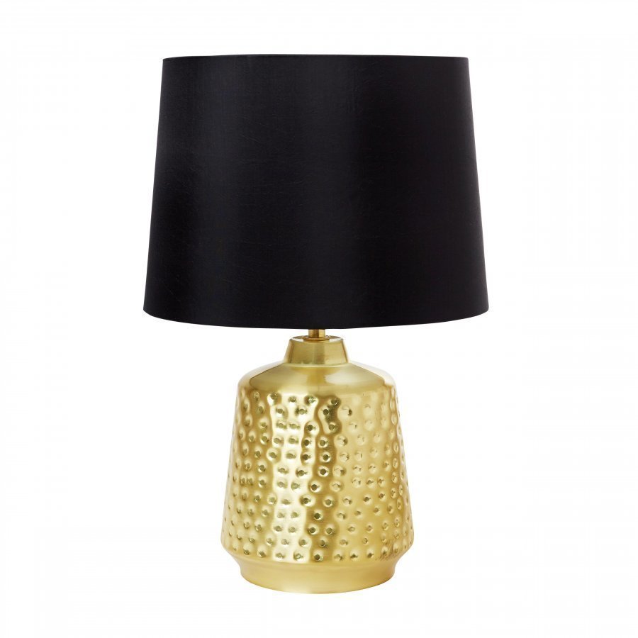 Pöytävalaisin, jossa on koristeellinen lampunjalka ja musta varjostin. 185 cm valkoinen johto.
