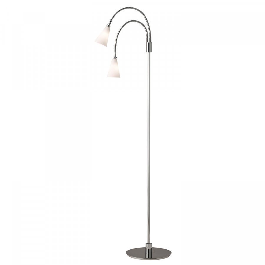 Archi Harlekin Lattiavalaisimessa kromi/valkoinen, on kaksi joustavaa vartta, jotka tekevät valaisimesta helposti säädettävän. Varjostimet on valmistettu lasista, joiden valo leviää harmonisesti ja valaisin onkin täydellinen lukulamppu. Liitäntä: 2m musta johto katkaisijalla. Valonlähde: 2xG9. Korkeus: 121cm. Halkaisija: 52cm.