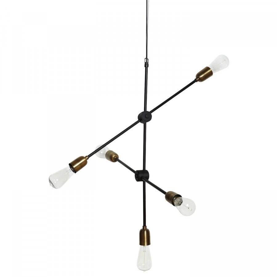 Molecular kattovalaisin merkiltä House Doctor. Erittäin upea, musta kattovalaisin hienoilla messinkiyksityiskohdilla. Valaisimessa on kaksi säädettävää metallitankoa, jotka voi osoittaa haluaamaasi suuntaan. Valaisimessa on viisi valonlähdettä ja se vangitsee varmasti katseita. Asennuksen aikana, lamppu ruuvataan katon. Johto mukana. Valonlähde myydään erikseen.