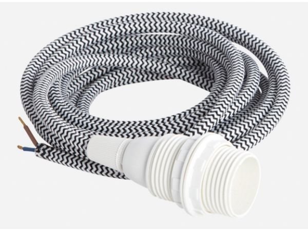 House Doctor valaisimen tekstiilijohto E14 musta-valkoinen