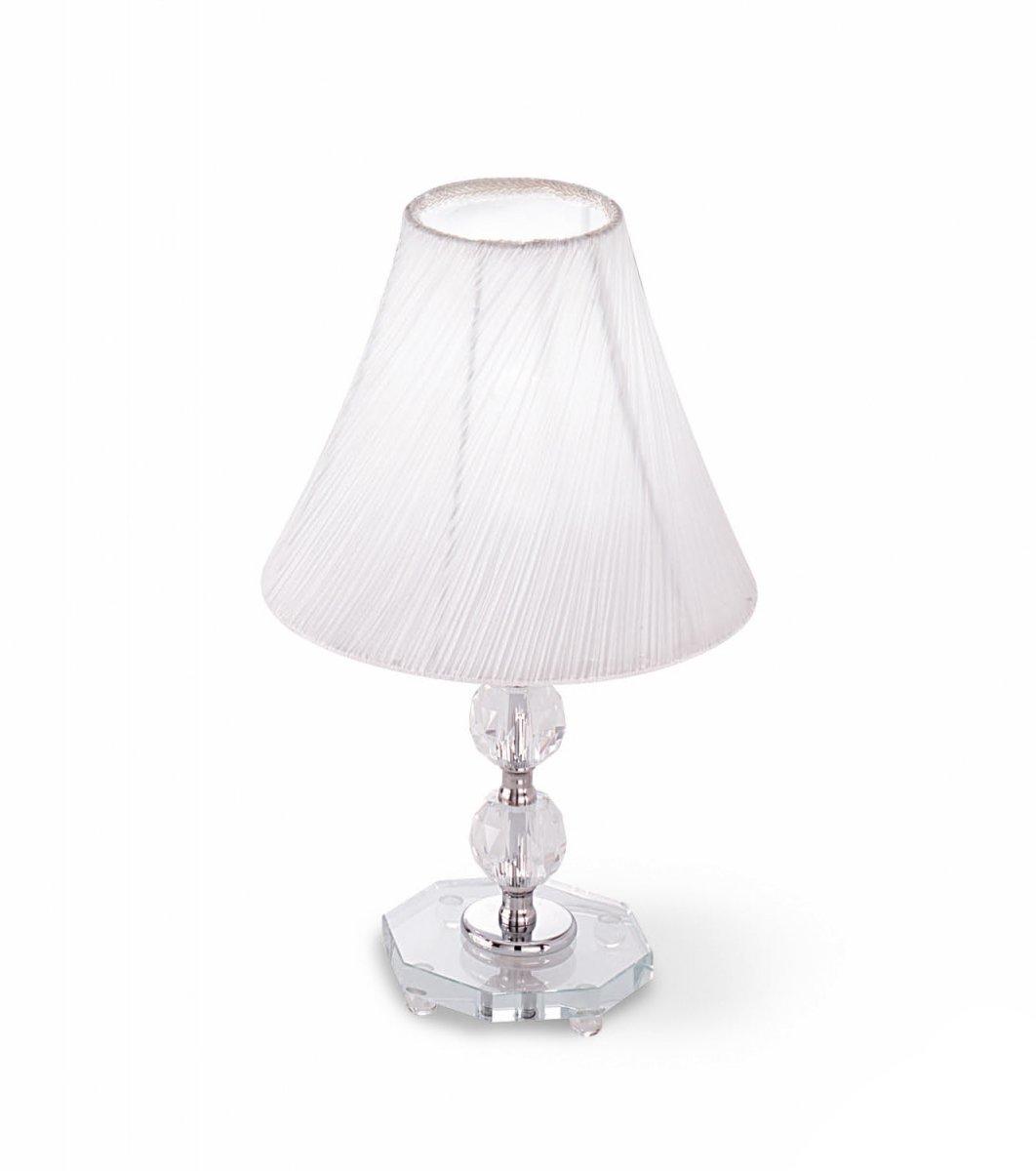 Ideal Lux Magic-20 Small -pöytävalaisin antaa valoa makuu- tai olohuoneeseen. Lasikristallein koristeltu metallirunko ja valkoinen varjostin. Tilaa heti!