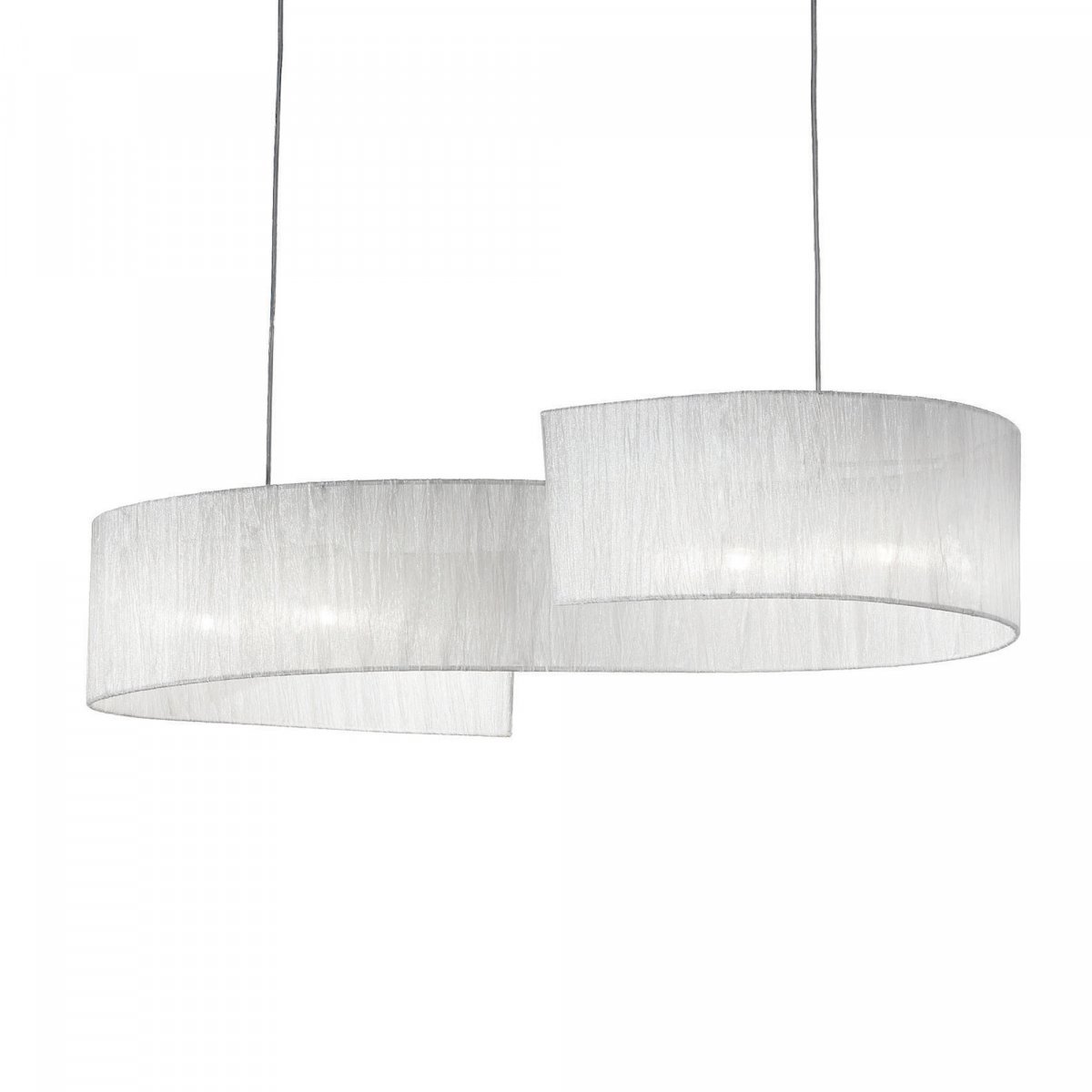 Nastrino-riippuvalaisimen kromattu metallikehys on muotoiltu kaarevaan muotoon. Kehystä ympäröi valkoinen organzavarjostin, joka siivilöi valoa kauniisti.