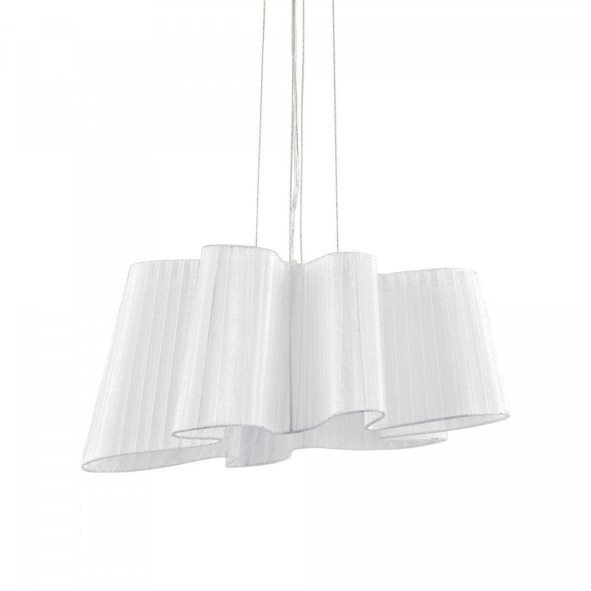 Smug-riippuvalaisimessa on aaltomainen muotoilu. Valkoinen organza-varjostin siivilöi valoa kauniisti.