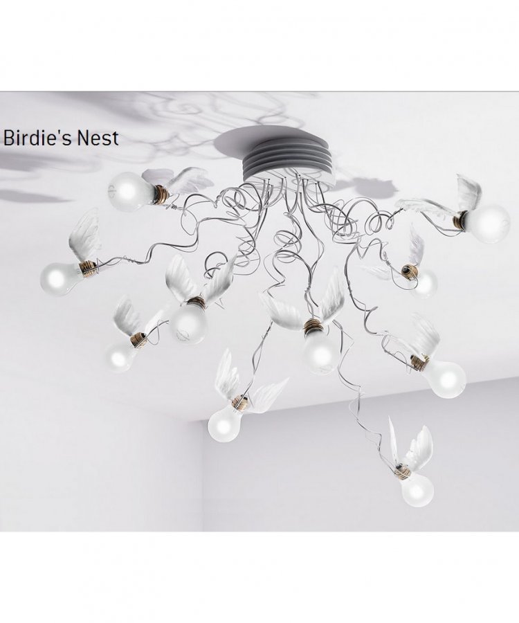 Birdie Nest Kattovalaisin. Tämä kattokruunu tuo valoa pimeään ja on kaunista katseltavaa. Monilla valonlähteillä varustettuna tämä kattokruunu on kaunis ratkaisu, joka sopii esimerkiksi olohuoneeseen, ruokailupöydän ylle tai eteiskäytävään.