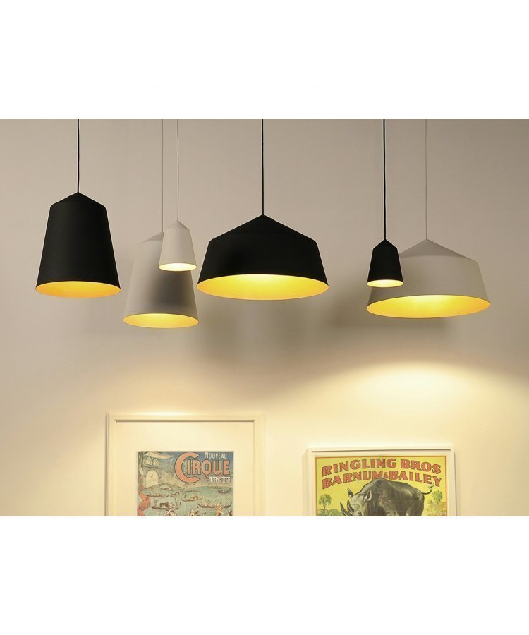 Design: Corinna Warm for Innermost Konsepti: Circus-kokoelma Innermostilta on elegantti ryhmä valaisimia, jotka on suunnitellut Corinna Warm. Tässä tapauksessa Warm on luonut lämmintä hehkua tuottavat valaisimet, kiitos niiden varjostimen sisuksen kultaisen päällystyksen. Riippuvalaisimia voi käyttää yksinään, mutta ne toimivat hyvin myös ryhmänä. Jos käytät niitä ryhmässä, voit leikitellä eri kokoisilla ja värisillä valaisimilla tuottaaksesi ainutlaatuisen ja persoonallisen ulkoasun. Valaisimen muoto on saanut inspiraationsa sirkusteltasta. Se on valmistettu alumiinista ja siinä on vankka jauhelakattu pinta. Voit valita kolmesta eri koosta sekä mustasta tai valkoisesta versiosta.