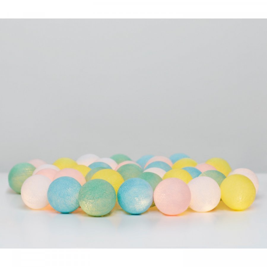 Irislights pallovalot, 10 kappaletta valopalloja merkiltä Irislights. Koristeellinen valoketju, jonka jokainen pallo on käsinvalmistettu ohuesta, käsinvärjätystä langasta ja ympäristöystävällisestä liimasta. Valoketju toimitetaan kokoamattomana ja kootaan yksinkertaisesti asettamallo pallot ketjuun. Pallojen välinen etäisyys on 14cm. Valot ovat CE-hyväksyttyjä ja paloaika on n. 50000 tuntia. Ripusta ketju kattoon, kulmaukseen, lipaston päälle tai maljakkoon. Luo kodikasta tunnelmaa, näillä miellyttävän keveillä valoilla.