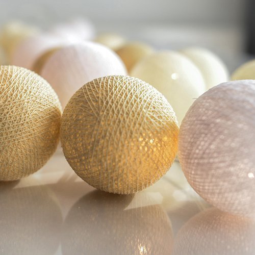 Jokainen koristepallo on valmistettu käsinvärjätystä nauhasta ja luontoystävällisestä liimasta. Valoketju on tarkoitettu sisäkäyttöön. Pallojen välinen etäisyys on 14cm. LED-valoketjun käyttöikä on noin 50 000 tuntia.