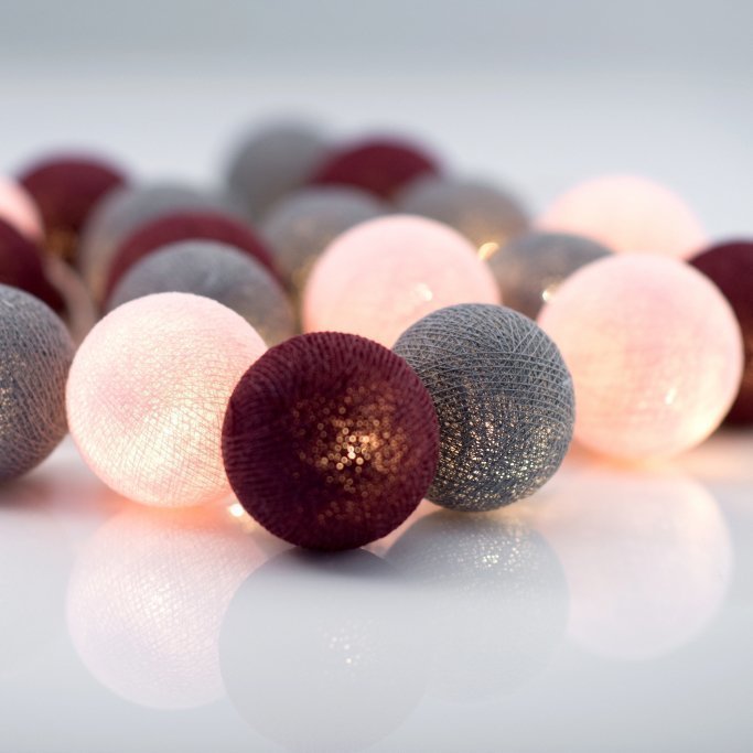 Jokainen koristepallo on valmistettu käsinvärjätystä nauhasta ja luontoystävällisestä liimasta. Valoketju on tarkoitettu sisäkäyttöön. Pallojen välinen etäisyys on 14cm. LED-valoketjun käyttöikä on noin 50 000 tuntia.