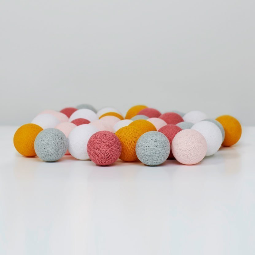Jokainen koristepallo on valmistettu käsinvärjätystä nauhasta ja luontoystävällisestä liimasta. Valoketju on tarkoitettu sisäkäyttöön. Pallojen välinen etäisyys on 14cm. LED-valoketjun käyttöikä on noin 50 000 tuntia.