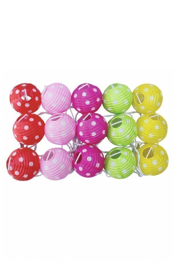 Pilkullinen Jabadabado-valoköynnös on värikäs koriste huoneeseen, vaikkapa ikkunaan. Pakkauksessa 15 palloa, 5 eri väriä. Halkaisija/pallo: 8 cm. Kokonaispituus: 3,5 m. Värit: punainen, roosa, vihreä ja keltainen.